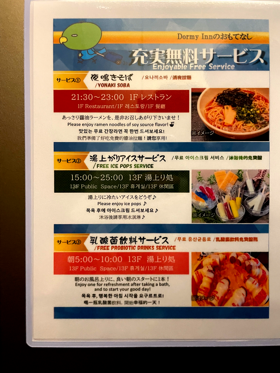 1층 식당에서는 21:30~23:00까지 간장라면을 제공하고