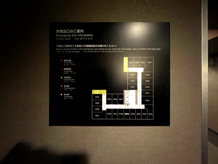 아까 시설정보에서 소개했듯이 13층은 대욕장, 2~12층은 객실, 1층은 프런트 데스크, 식당, 주차장이 있음을 안내하네요.