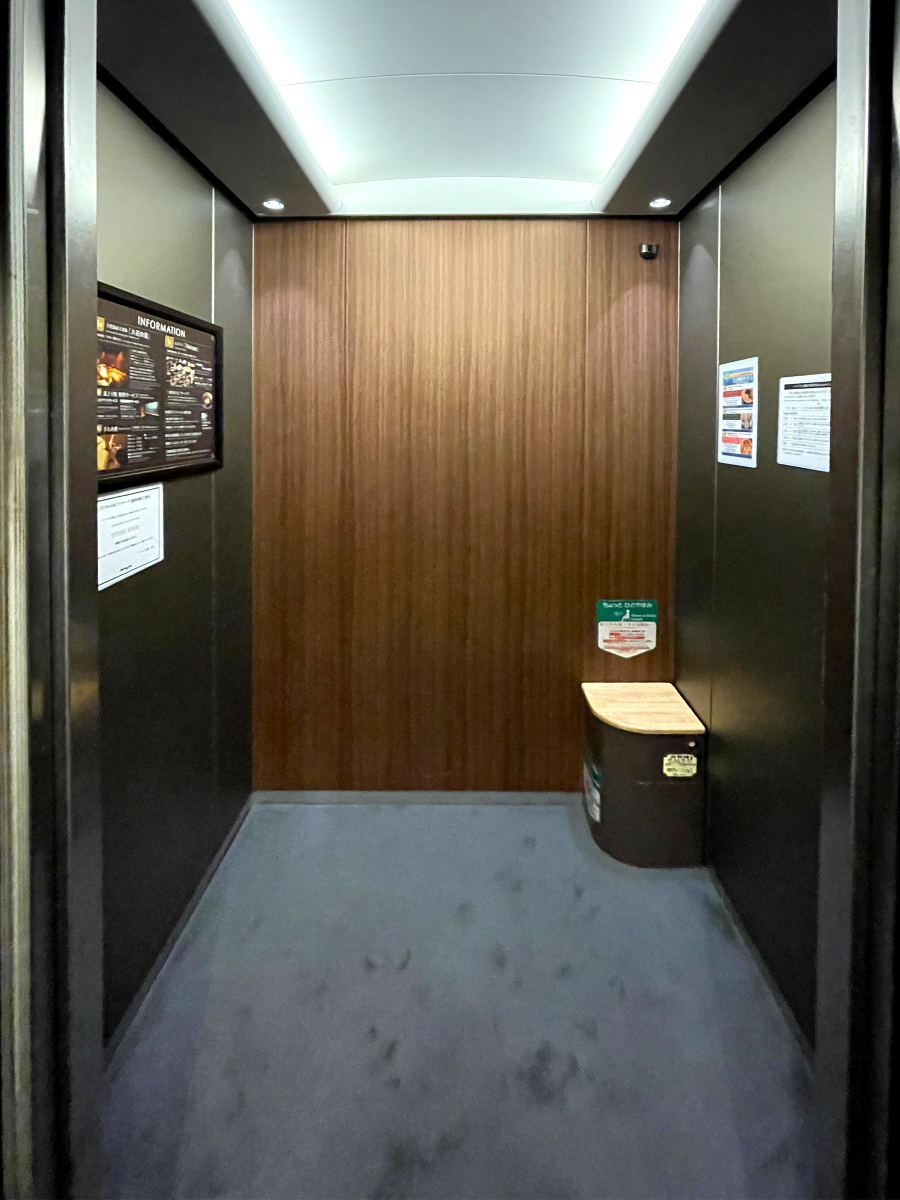 엘리베이터를 타고 숙박할 곳으로 갑니다.