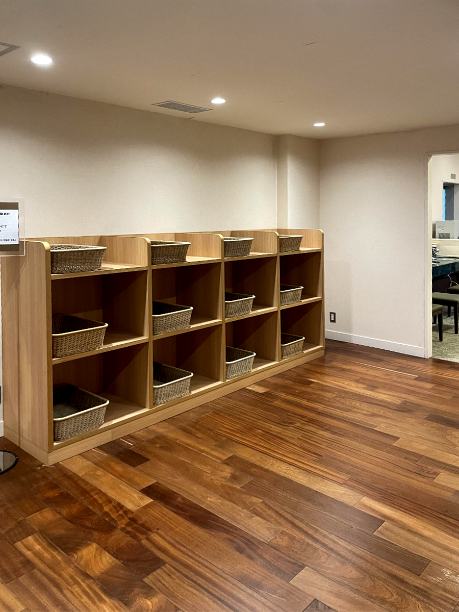 나무로 만든 락카의 폭도 약 50㎝로 넓은 사이즈여서, 조금 큰 가방에서도 괜찮습니다.