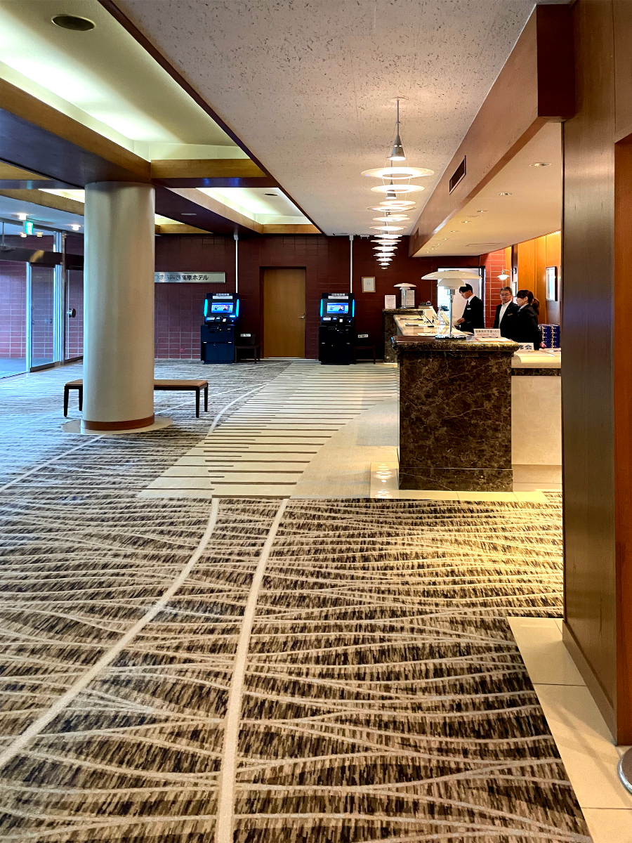로비는 다크 브라운의 대리석 카운터와 화이트와 브라운을 기조로 한 푹신푹신 카펫이 특징입니다.