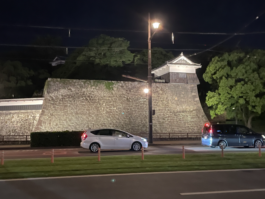 길 건너 구마모토 성과 전철이 보이는데 관광하고 싶은 충동이 문득 나네요.