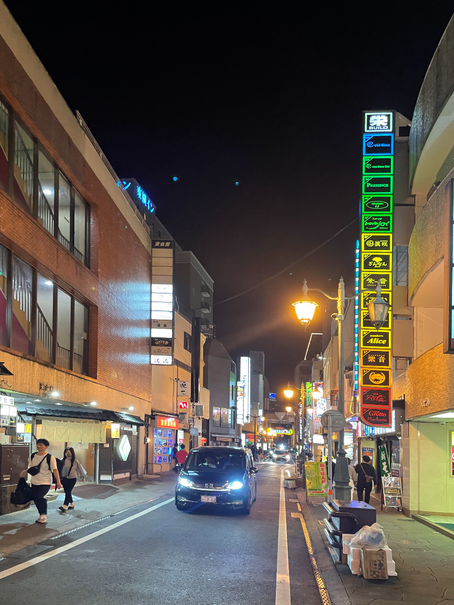 다양한 술집들이 시선을 끌지만 아랑곳하지 않고 지나칩니다.