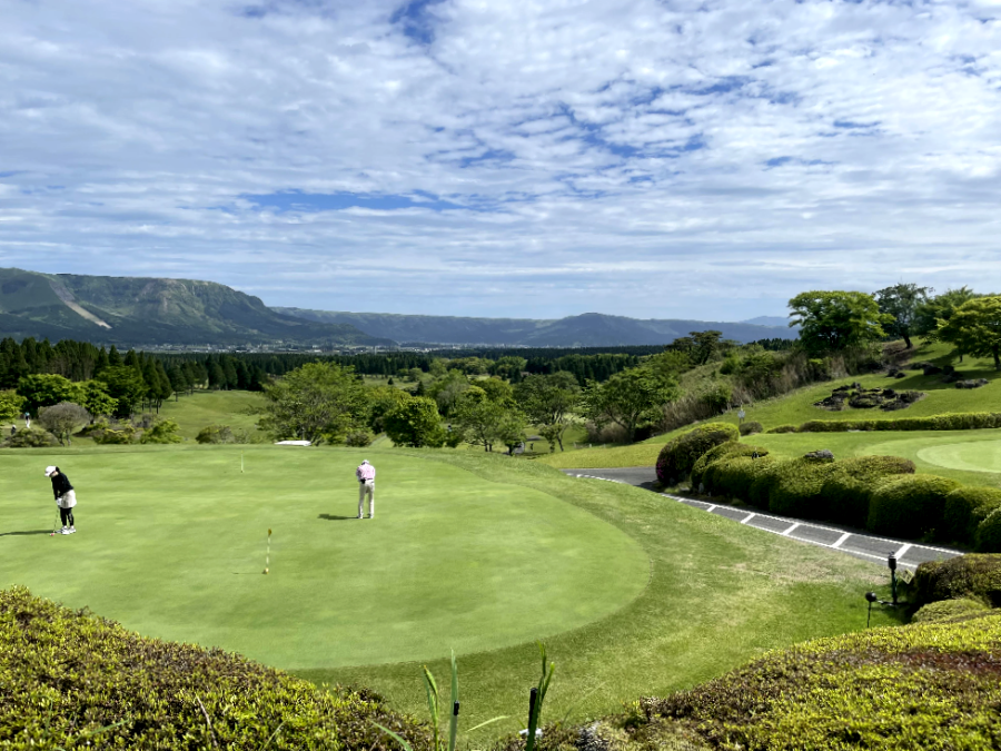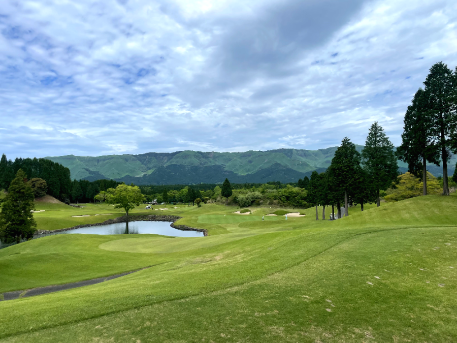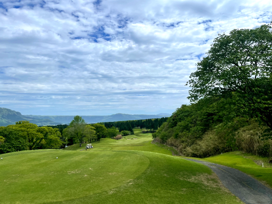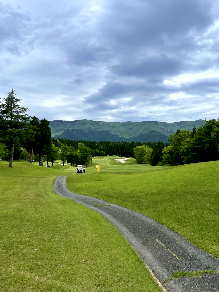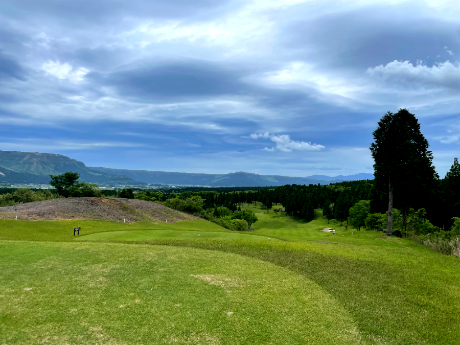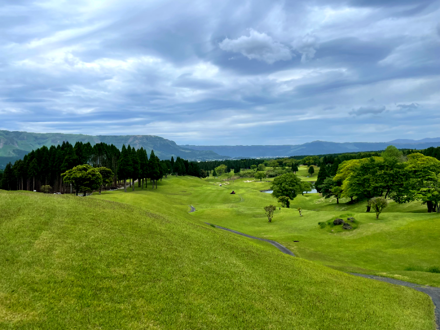 아래 사진과 같이 아소 외륜산을 바라보는 절경으로 가득 찬 골프장으로 상당히 기대가 됩니다.
