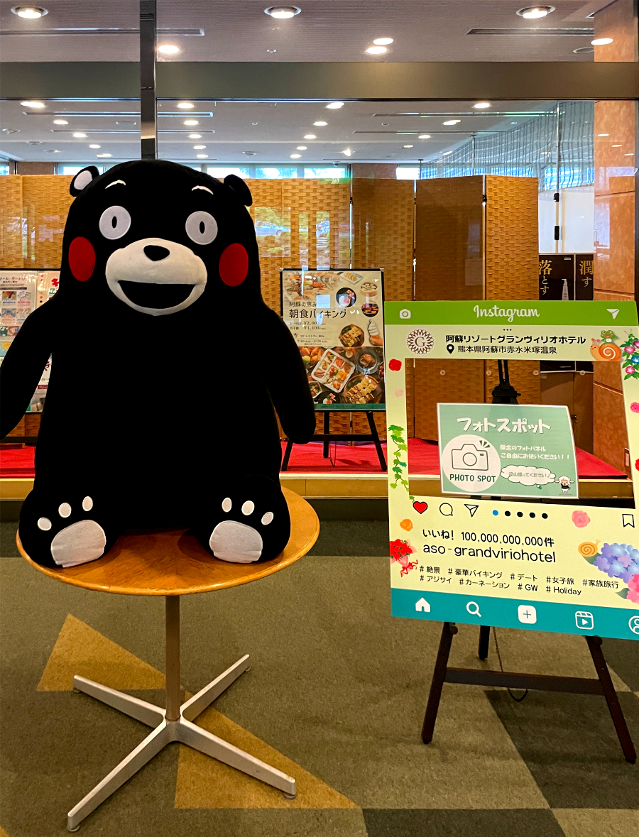 구마모토의 상징인 검은 곰 캐릭터가 시야에 박히네요.