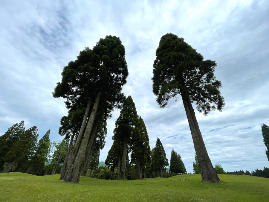 아소 외륜산이 왼쪽에 보이며 아소산 전체에 둘러싸여 있습니다. 3일 동안 친 골프장중에 제일 좋은 골프장 같습니다.