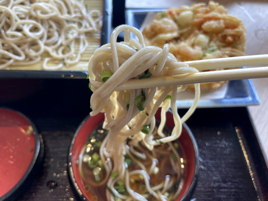 모밀 소바를 주문하여 맛있게 먹습니다.