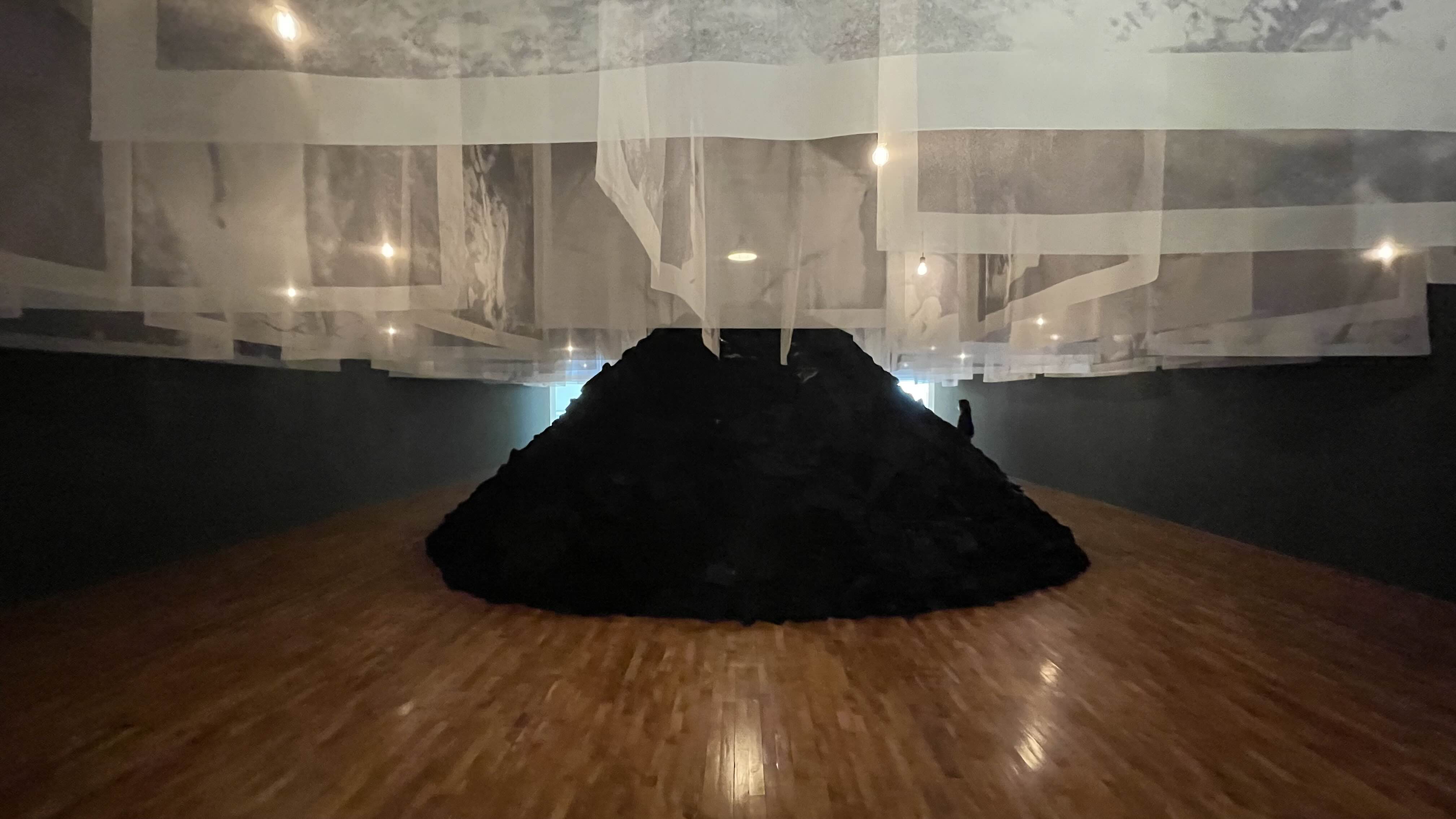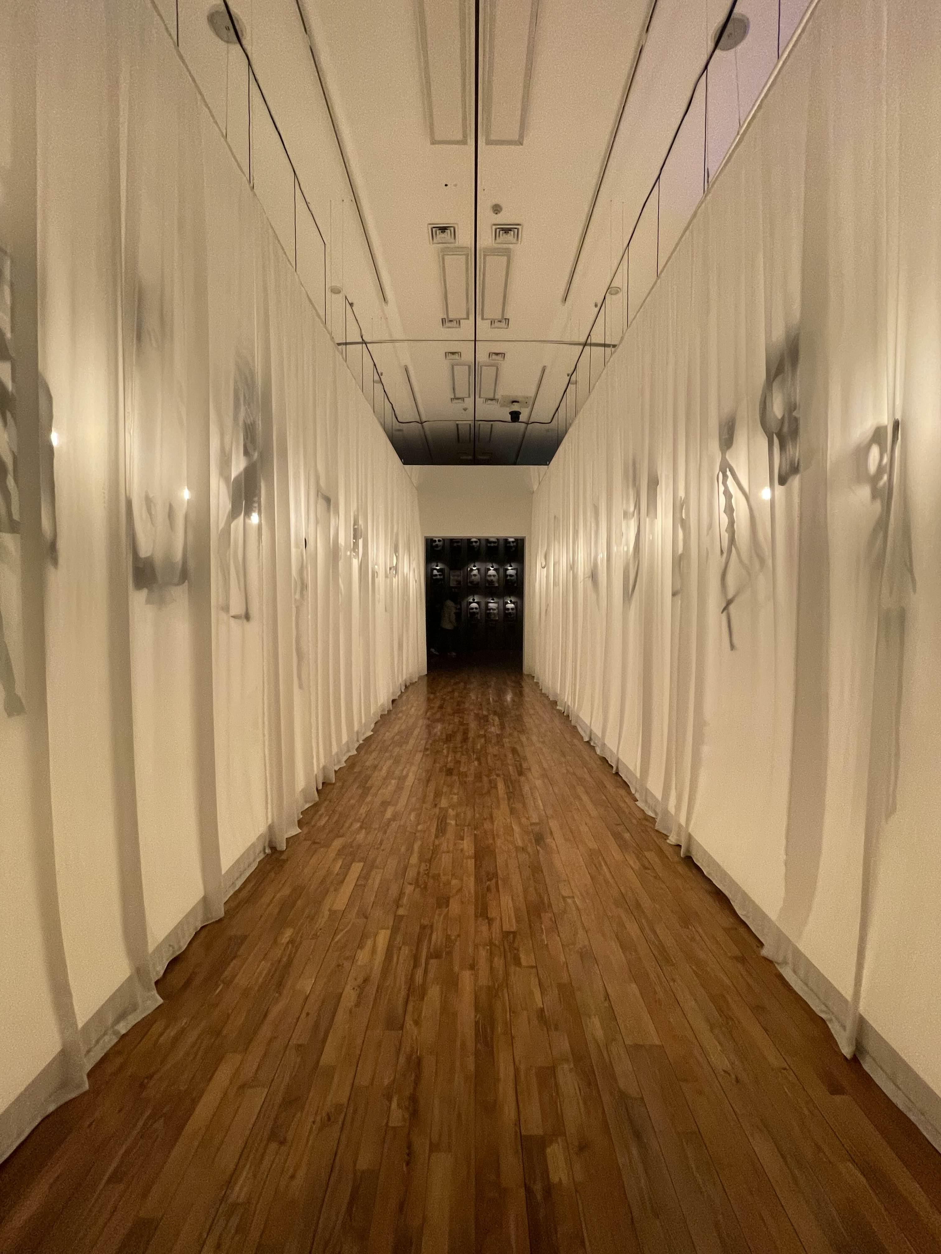 전시장에는 이 작품과 함께 영혼이 부유하는 듯한 80여 개의 천 작품 ‘인간’을 배치해 절묘한 조화를 만들어냈다.