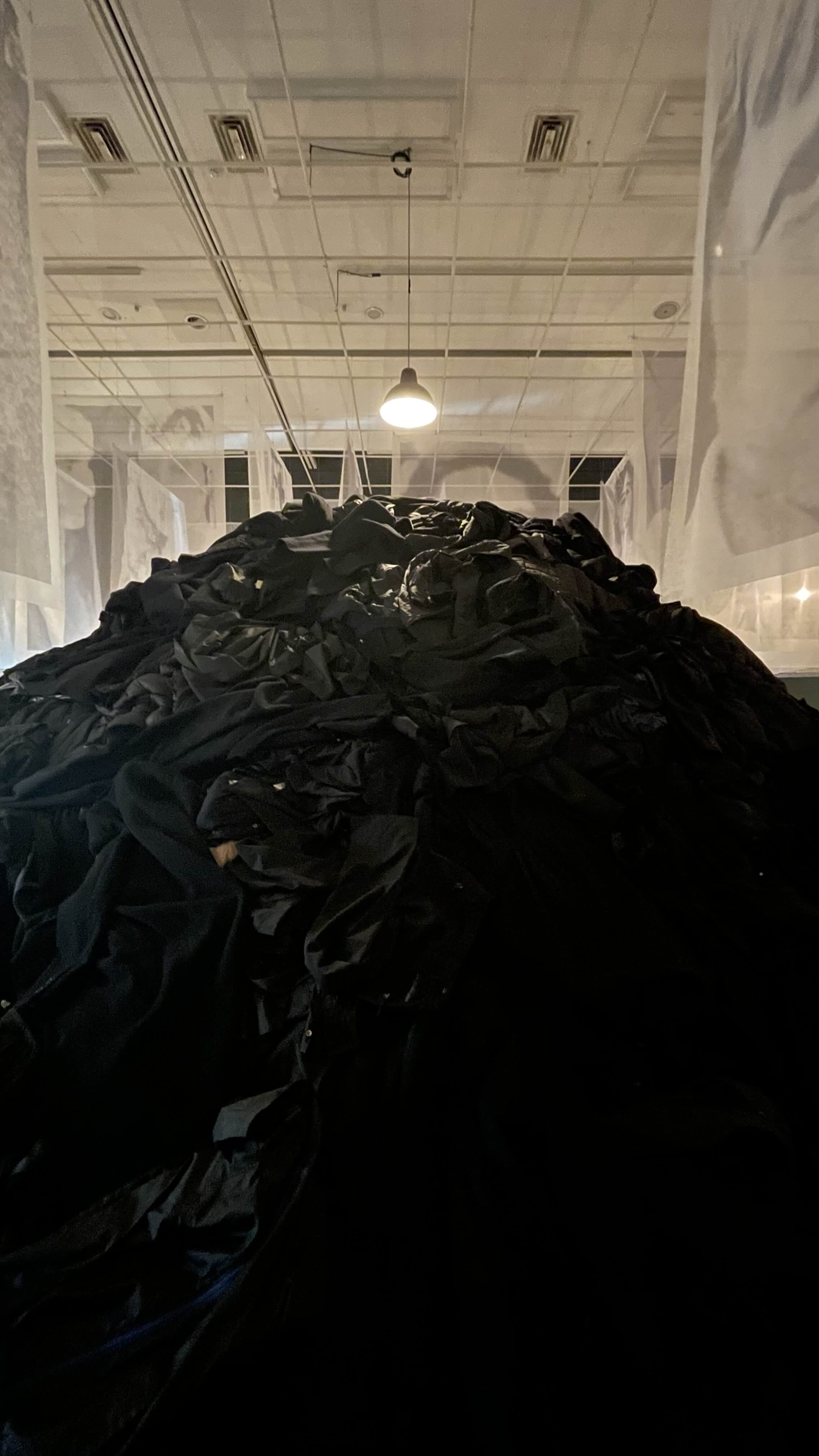 과거에는 누군가의 소유물이었을 검정 옷들이 형태조차 구분하기 어렵게 쌓여있는 모습은 그 자체로 ‘죽음’을 암시한다.