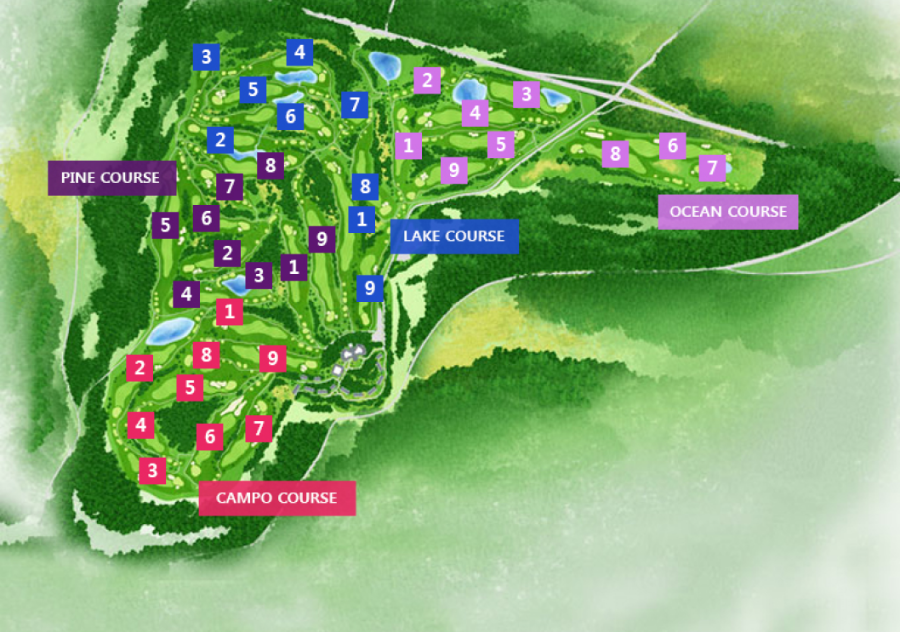 파인코스 : 소나무에 둘러싸여 마치 갤러리들을 몰고 다니며 골프를 치는 분위기를 자아냄