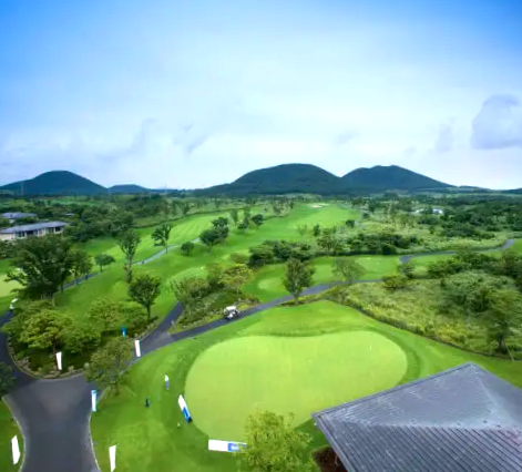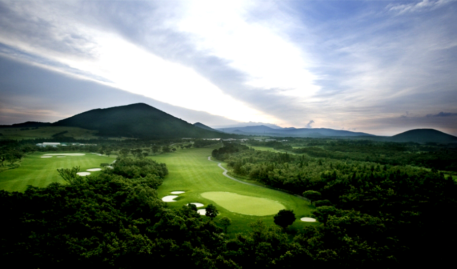 위치특성 제주 오름들이 병풍처럼 둘러싸여 바람 걱정 없이 골프이용 가능