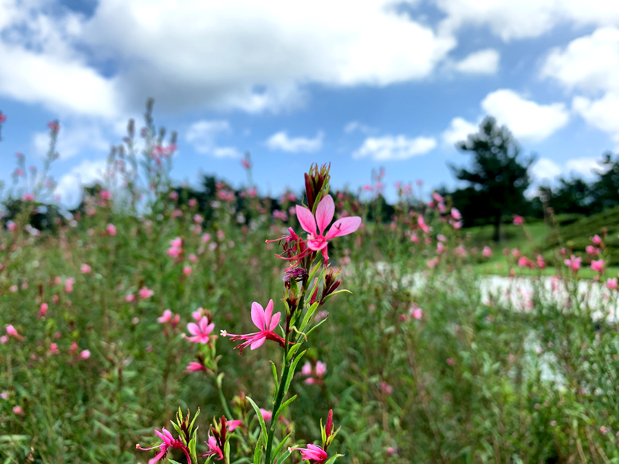 페어웨이 주변으로 늘어선 풍성한 녹음 속에 자리 잡은 분홍빛의 꽃들이 나름 멋진 자태를 보여주고 있습니다.
