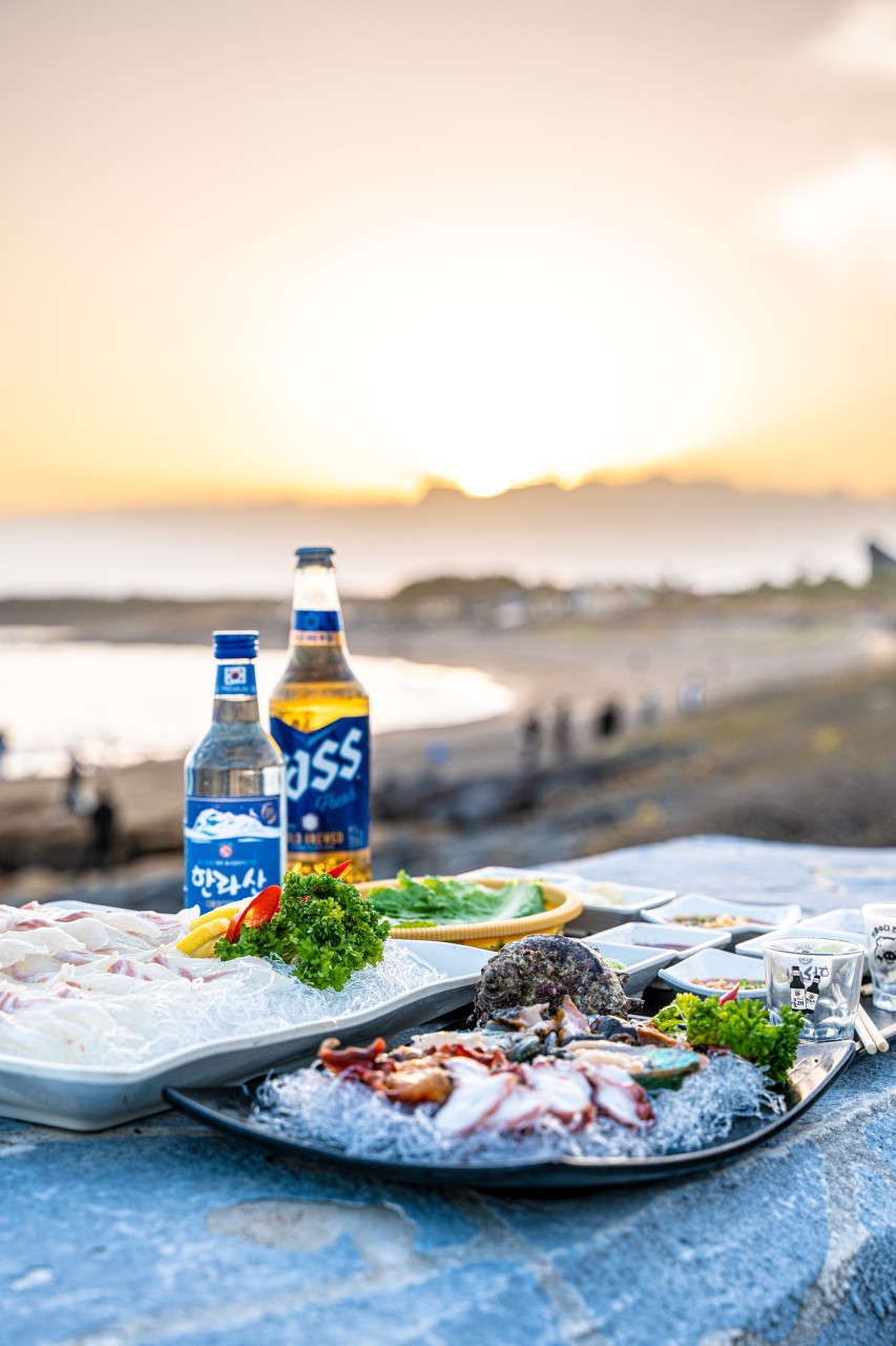 사람들의 대부분은 아래 사진처럼 사계항 앞바다를 보며 먹는 모습도 보이지만,