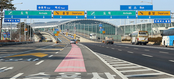 여객터미널의 버스와 승용차(택시포함)의 진입로가 분리되어 있으니 도로안내표지의 승용차·택시용 진입차선을 반드시 지켜서 진입하여야 합니다.