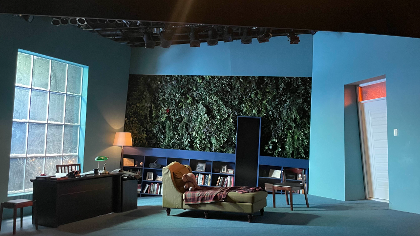 무대의 배경이 될 정신과 치료를 위한 사무실이 보입니다.