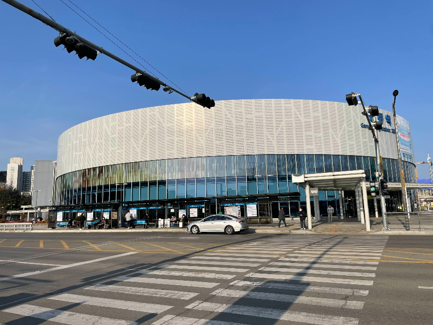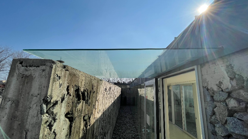 나오면서 찍은 아까 본 사이 공간 상부의 유리 캐노피도 세련됨을 더 강조해 줍니다.