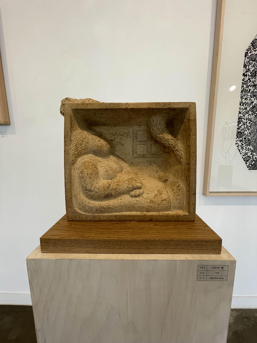여러 조각품을 감상하다가 눈에 띄는 작품이 있었습니다.