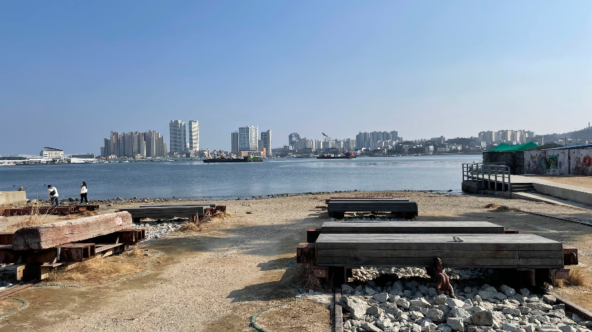 일부 야외공간은 배들이 완성되고 바다로 내보낼 수 있는 레일들이 야외 테이블과 사진 명소로 이용되고 있습니다.