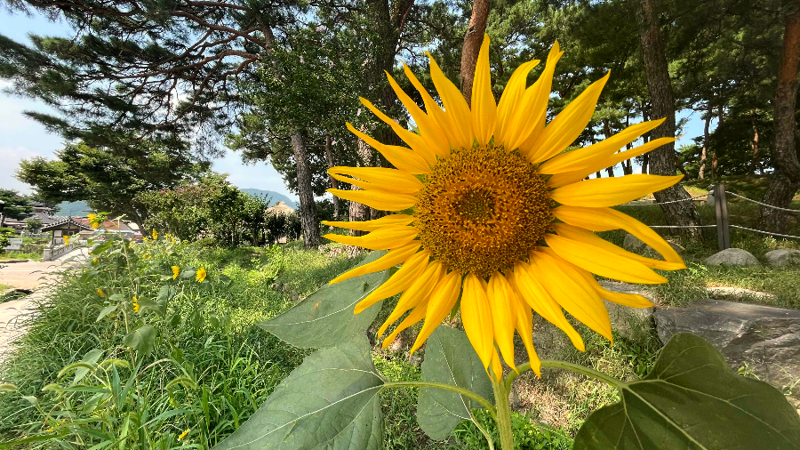 해바라기까지 마을을 아름답게 빛내고 있습니다.