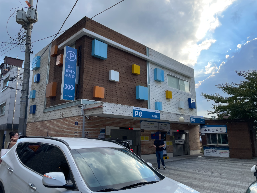 별도로 떨어진 주차장의 모습입니다. 기계식 주차장이지만 넓고 쾌적해서 부담이 없습니다.