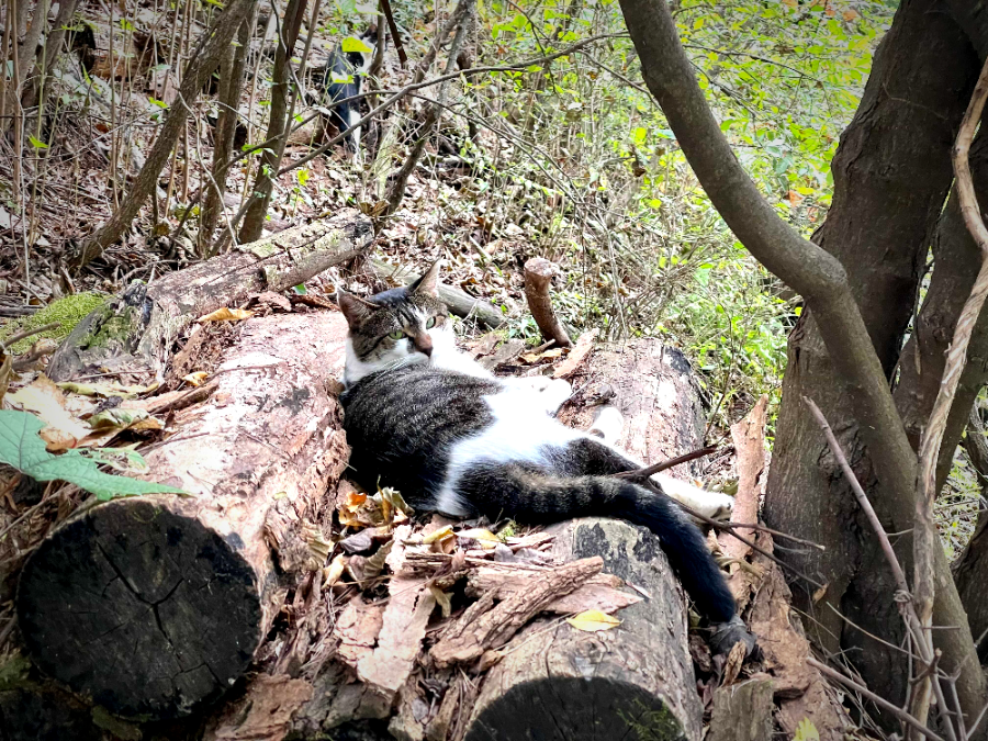 광명 구름산 산행 코스 중간에 걸터앉은 고양이가 나를 불쌍하게 바라봅니다.