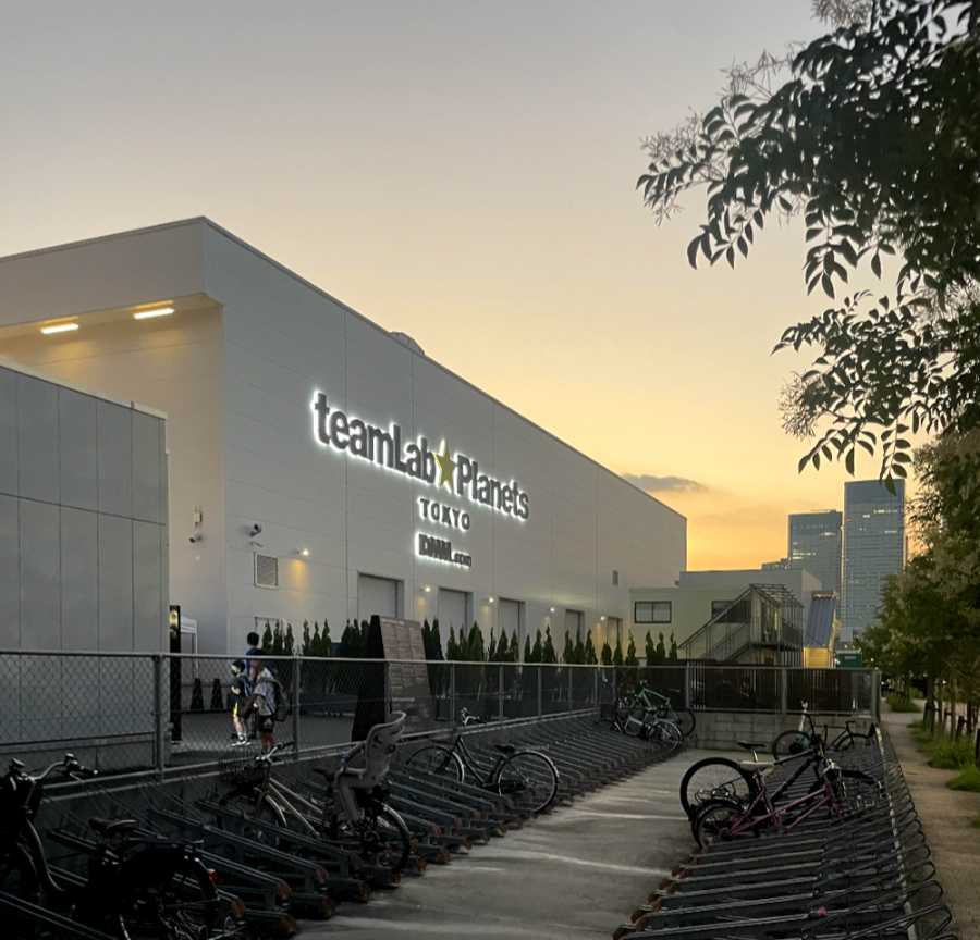 주차장에서 걸어서 3분 거리에 팀랩 플래닛 도쿄 건물이 보입니다.