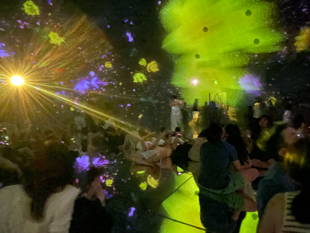 공중과 바닥에 둥둥 떠다니는 빛 사이로 많은 이들이 어울려 즐기게 됩니다.