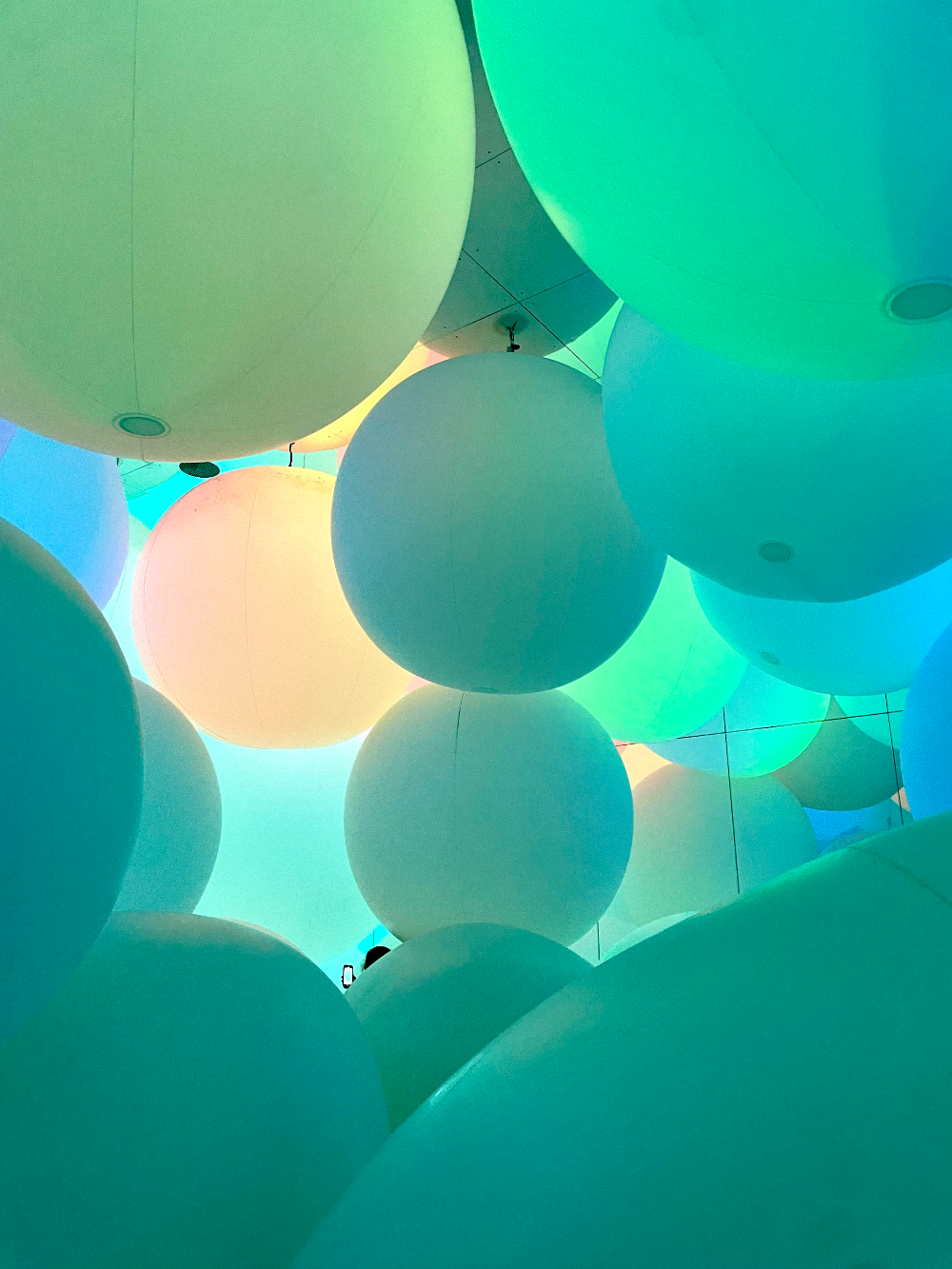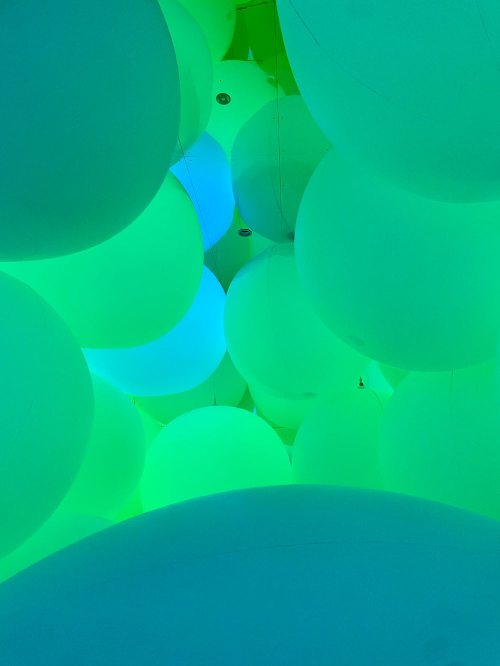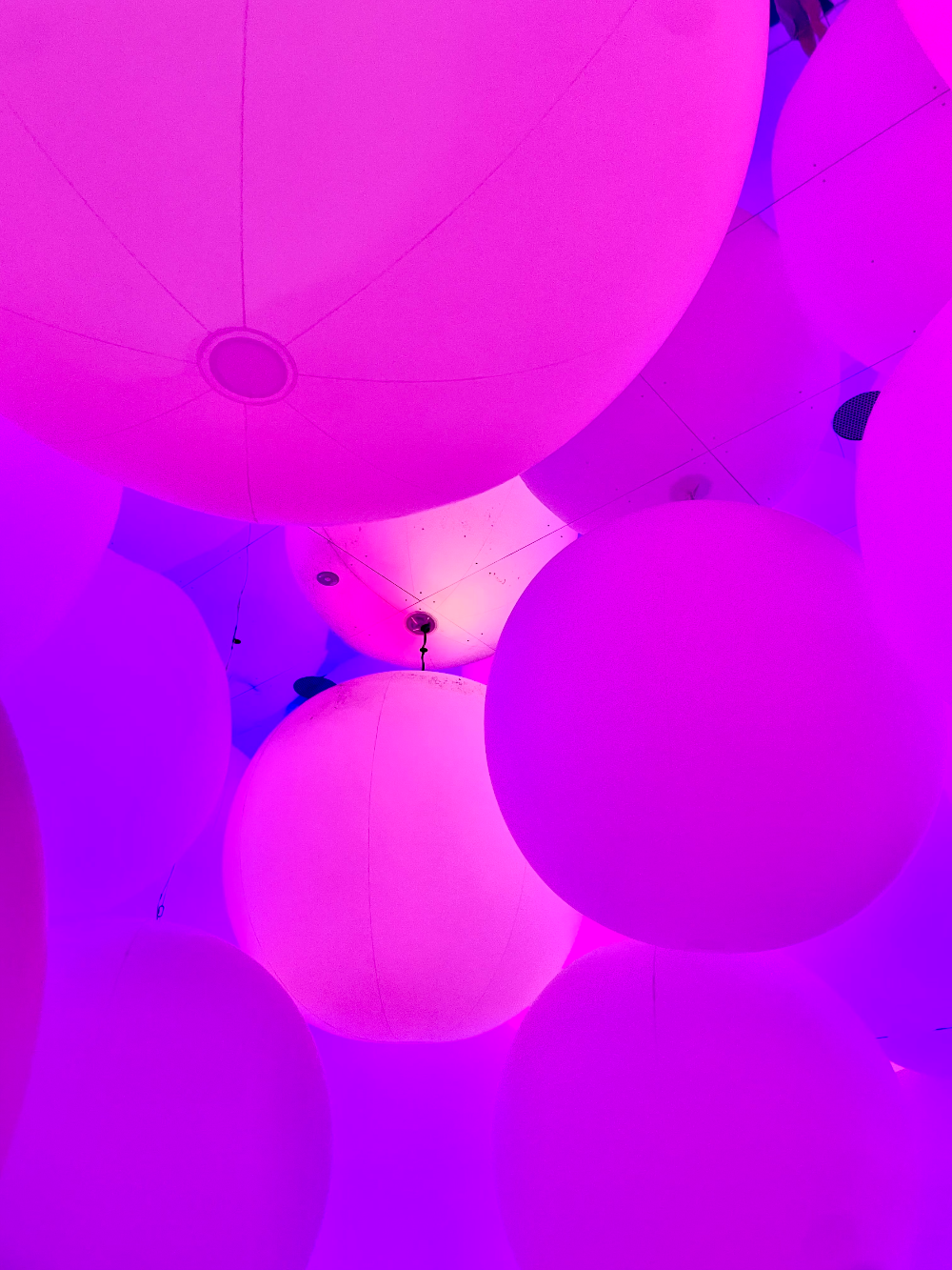 1일 차 늦은 저녁 팀랩 플래닛 속으로 들어가 '언덕 위의 빛의 폭포, 소프트 블랙홀, 사람과 함께 춤추는 잉어가 그리는 수많은 수면 위의 드로잉, 생명은 결정화된 덧없는 빛'을 감상하였는데, 그야말로 환상적인 미디어 아트였습니다.
