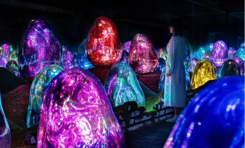 TeamLab은 색상의 개념을 완전히 새로 하며, 형형색색 돋보입니다.