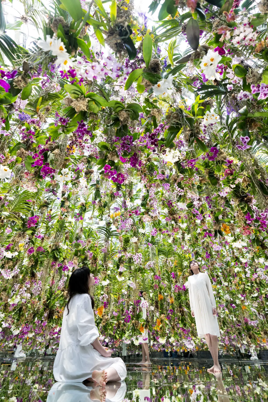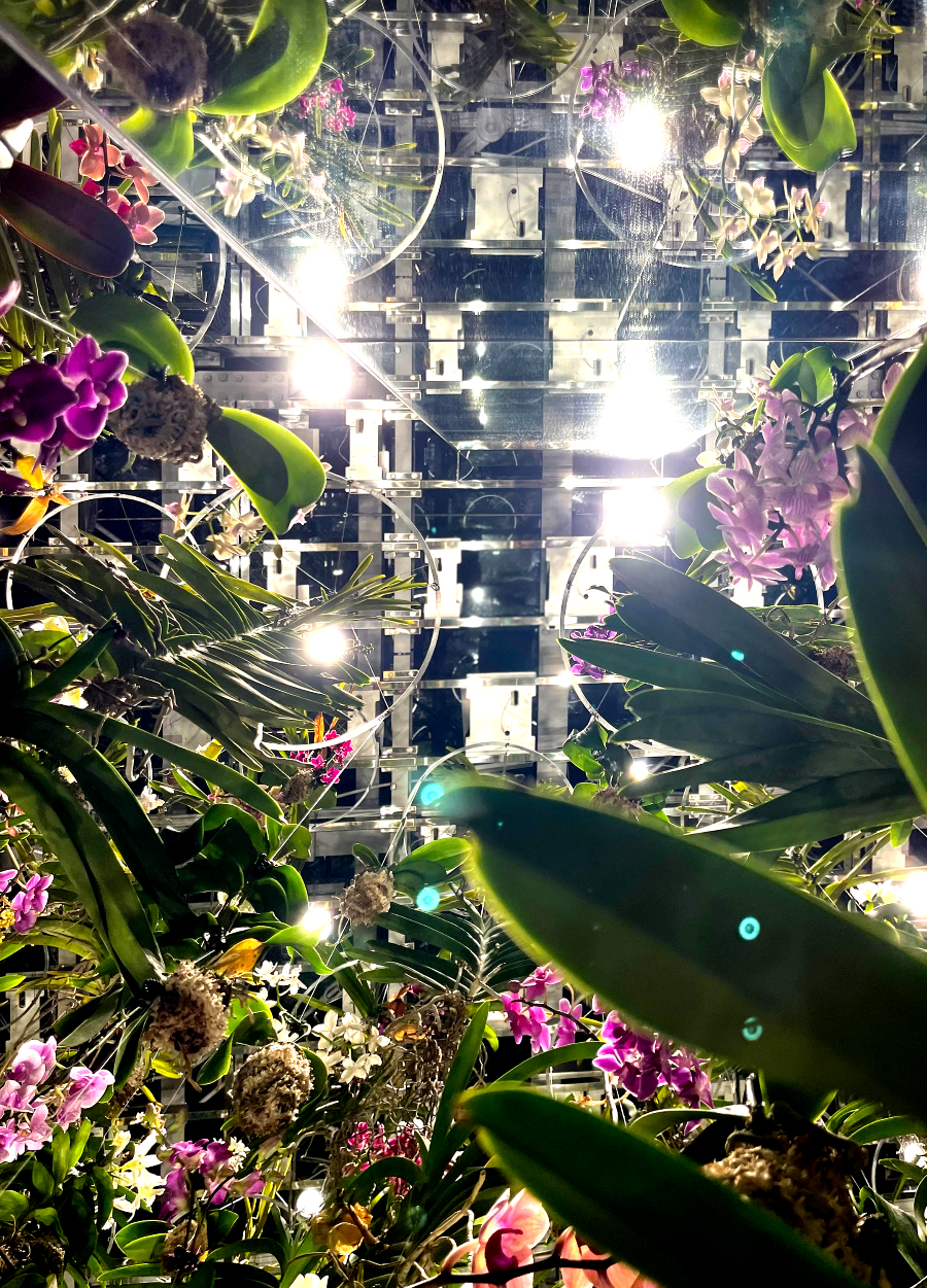 공간은 꽃들로 가득하지만, 사람이 있는 곳은 꽃이 올라가 공간이 생기며 꽃으로 가득한 공간 속을 자유롭게 거닐 수 있습니다. 바닥이 거울이기 때문에, 이 작품 속에서 타인과 만나면 각자의 공간들이 연결되어 자연스럽게 하나가 됩니다.