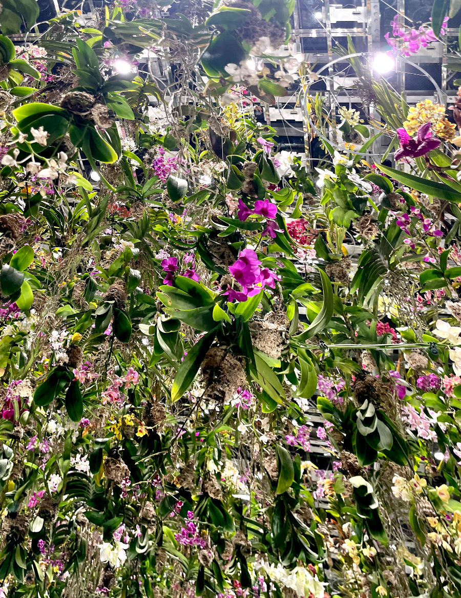 이 작품의 꽃들은 공중에서 오르락 내리락 살아가며 하루하루 성장해 꽃망울을 맺고 피어납니다.