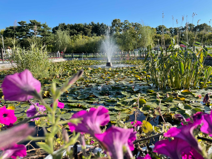 분수가 초입임을 알려주며 여러 종류의 꽃들이 보러 오라고 유혹합니다.
