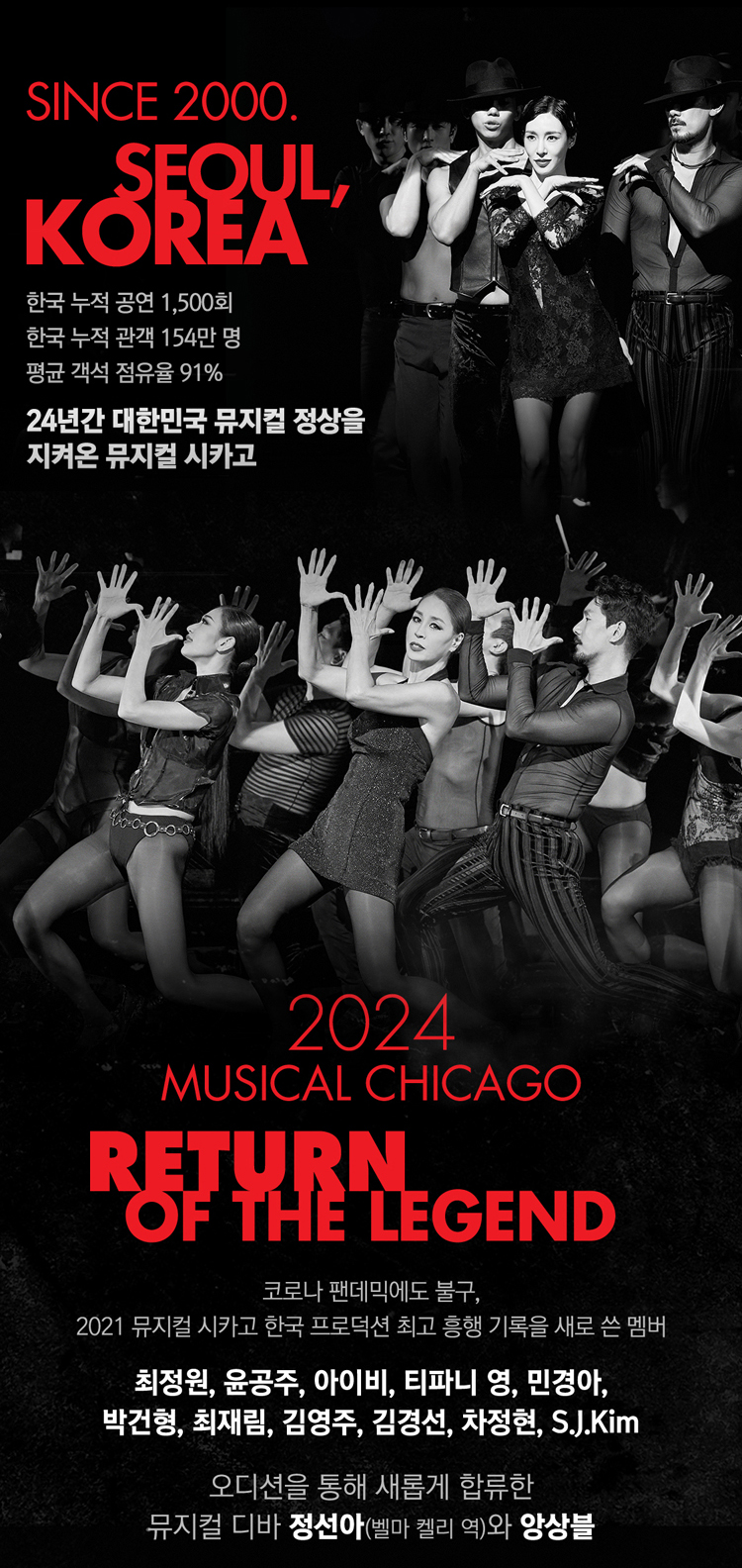 24년 현재 뮤지컬 '시카고'는 한국에서 흥행몰이를 하며, 전국으로 투어를 진행하고 있습니다.