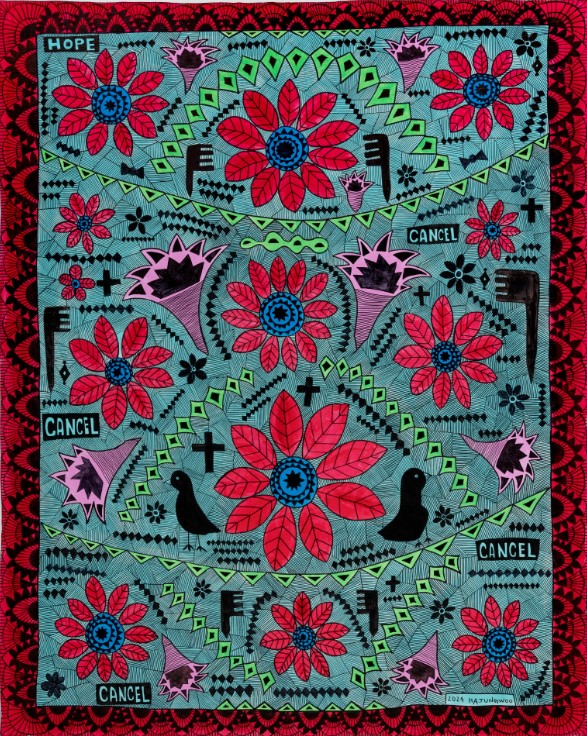 또한 토속적 문양을 활용하여 인간 내면의 직관을 시각적으로 풀어내고자도 했네요.