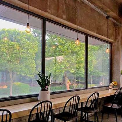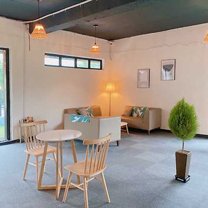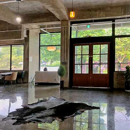 넓은 공간에서 은은한 조명과 커다란 창을 통해 푸르른 자연을 만끽하며 조용한 분위기를 즐길 수 있습니다.