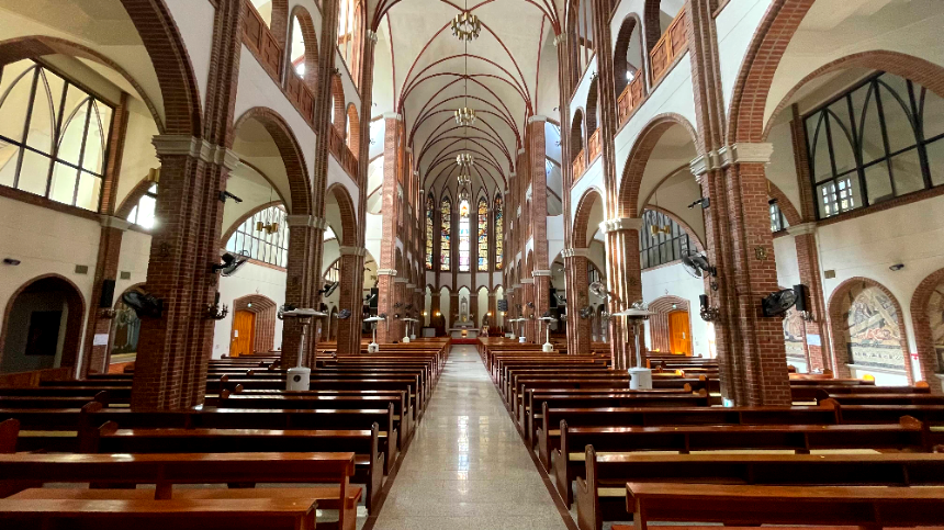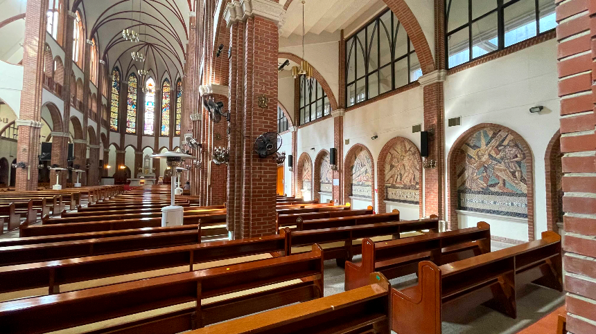 성당은 지하 1층, 지상 2층이며 면적이 3,450m²에 이릅니다.