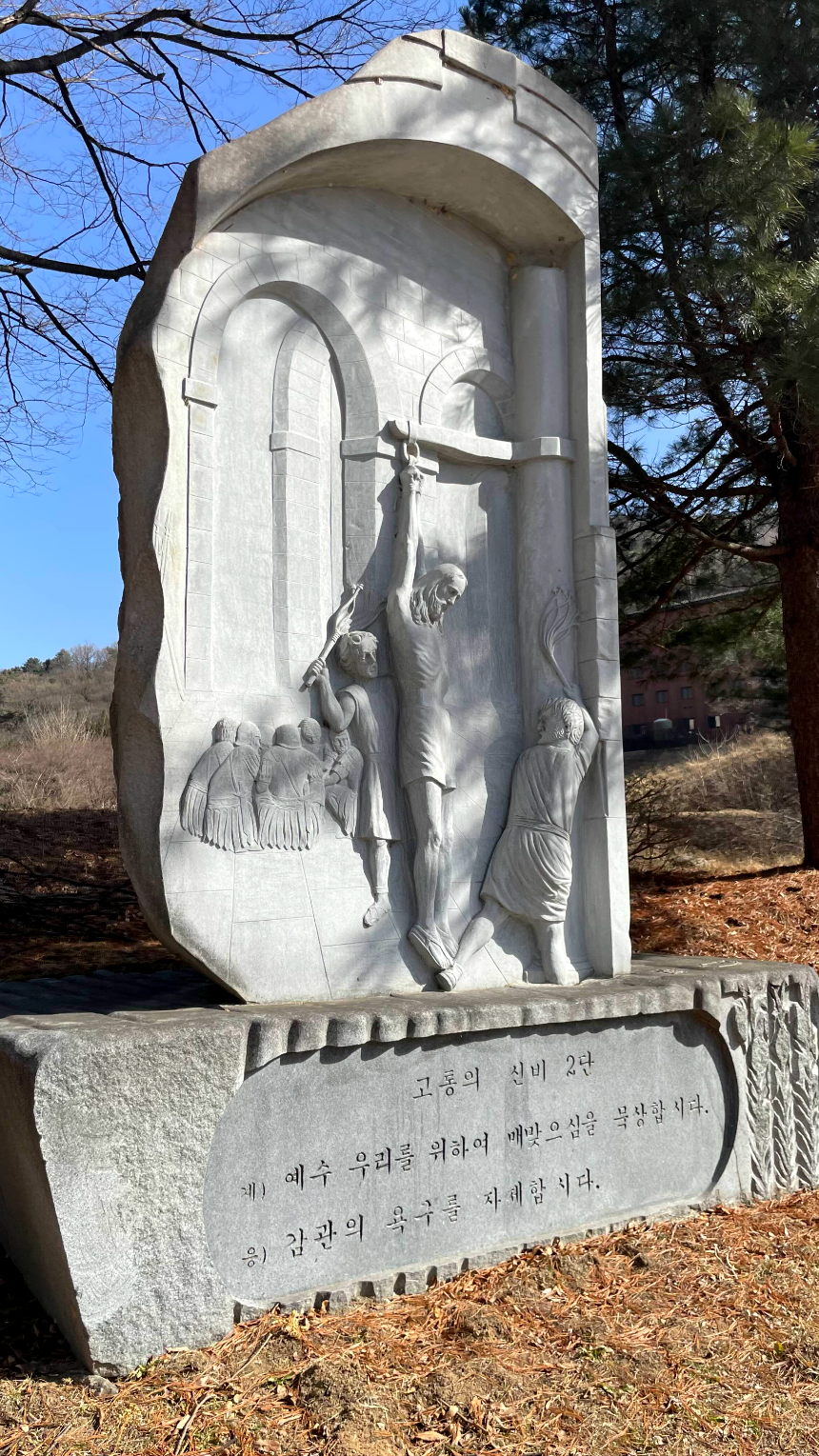 한국 순교자 103위 시성 기념성당으로 올라가는 길은 생각보다 길지만 곳곳에 조각상이 있습니다.