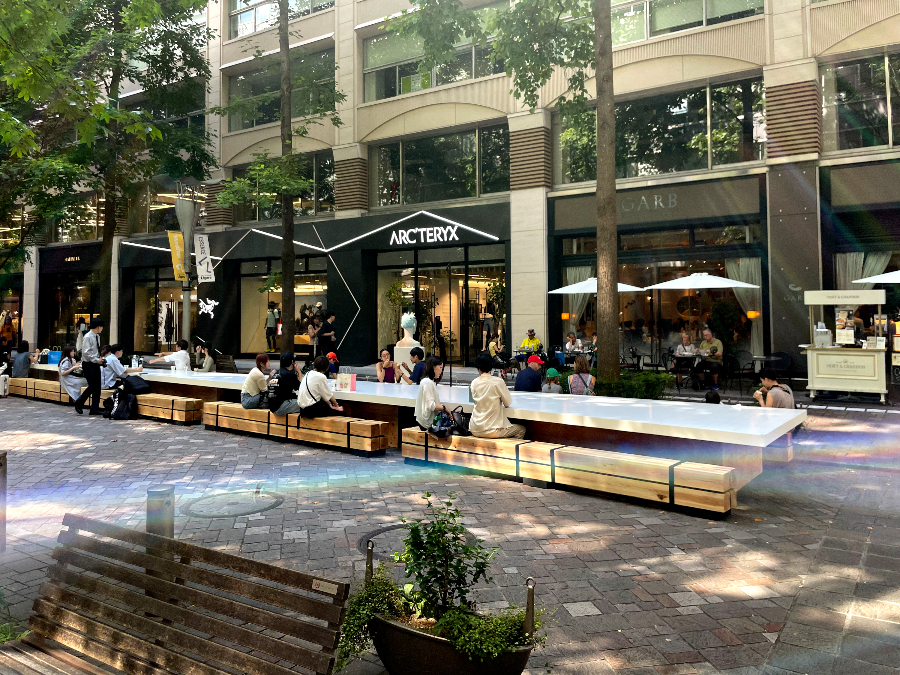 마루노우치 스트리트 갤러리의 가장 큰 장점은 테이블과 의자가 제공되어 앉아서 쉴 수 있는 공간이 발생하며, 예술품도 감상할 수 있습니다.