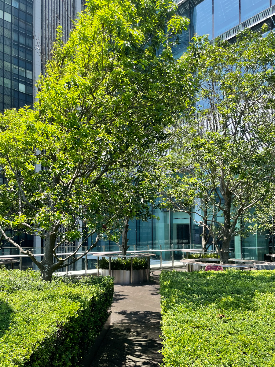 킷테 마루노우치 타워의 외관, 스타벅스, 옥상정원을 관람하며