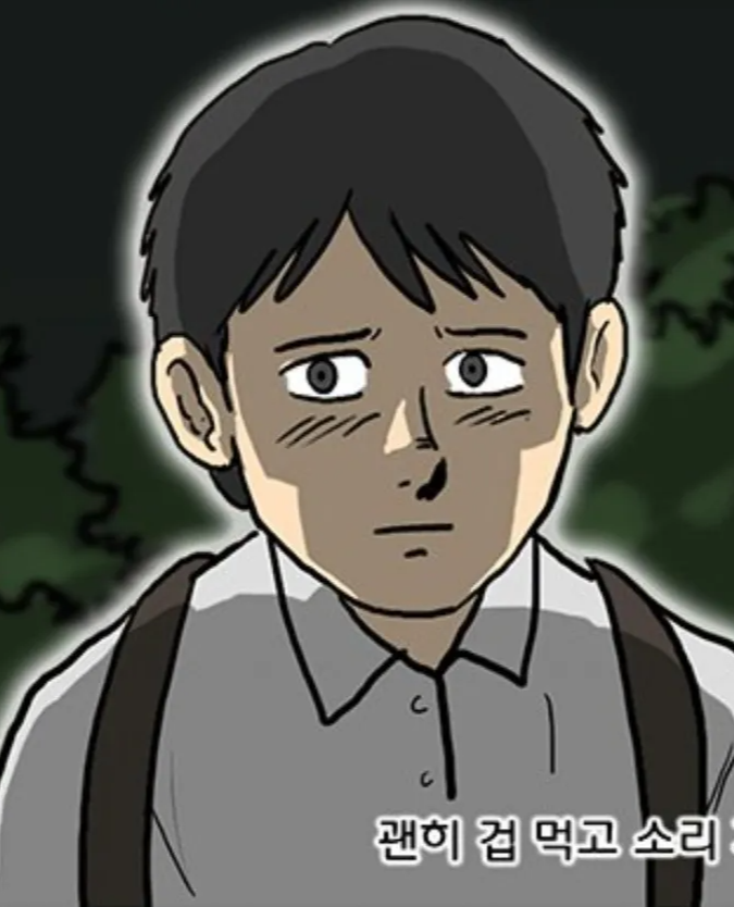 무서움을 극복하기 위해 노래를 부르며, 골목길을 지나는 순박한 소년을 연기합니다.