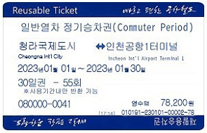 | 사용조건 | 공항철도 일부구간(청라국제도시역~인천공항2터미널역)만 사용가능 |
