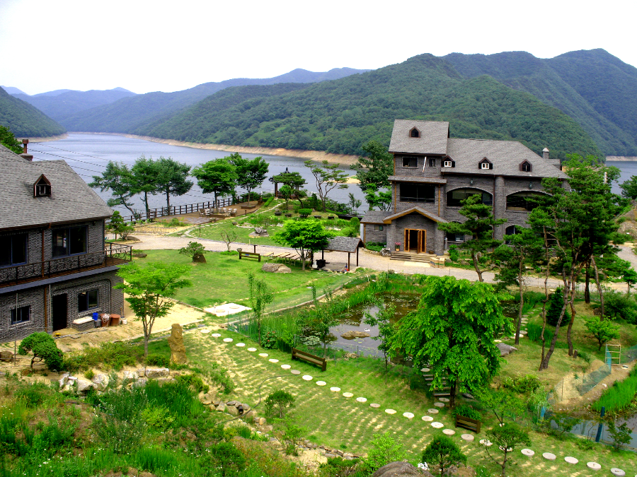 정원에서 바라보는 호수풍경은 말로 표현할 수 없을 정도의 절경을 이루고 있습니다.