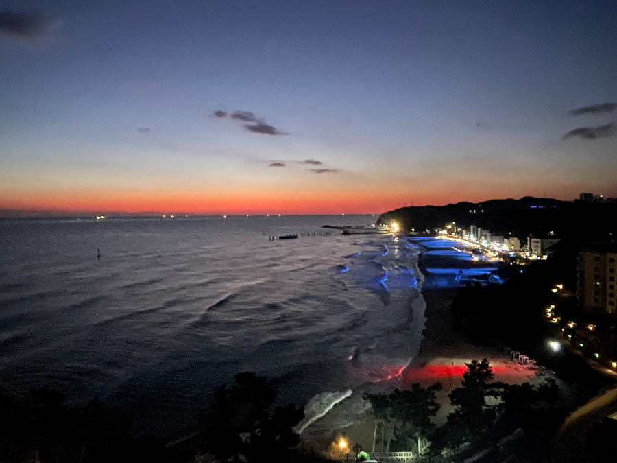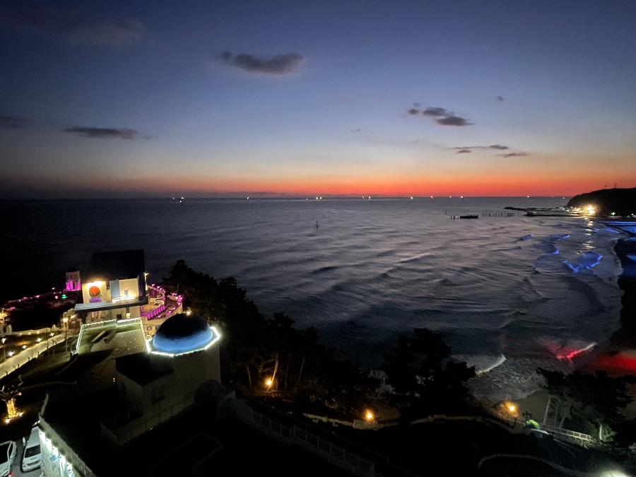 어찌 되었든 강원도 삼척에서 동해바다를 이렇게 호텔 발코니에서 감상하는 게 정말 운이 좋네요.