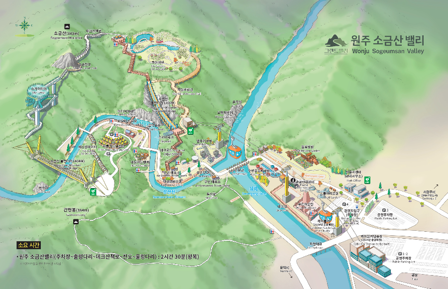 상위 그림은 소금산 그랜드밸리 시설배치도로써 케이블카, 하늘정원, 에스컬레이터도 생긴다고 하니 점점 여행지로써 매력을 느낄 수 있네요.