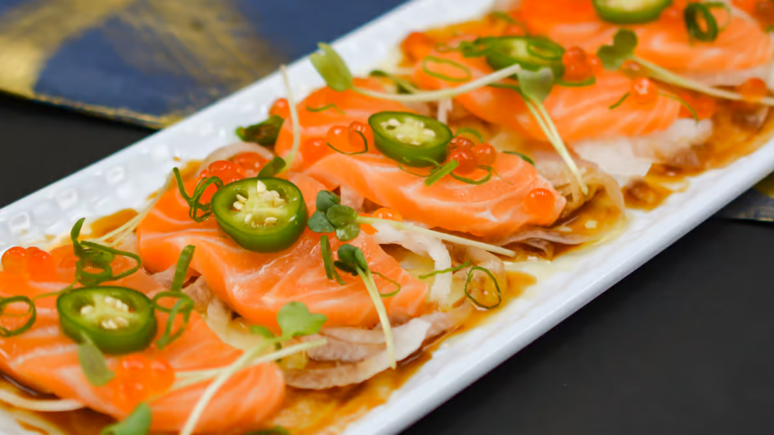 - 다이긴조 사케와 함께 부드러운 조화를 즐긴다.
